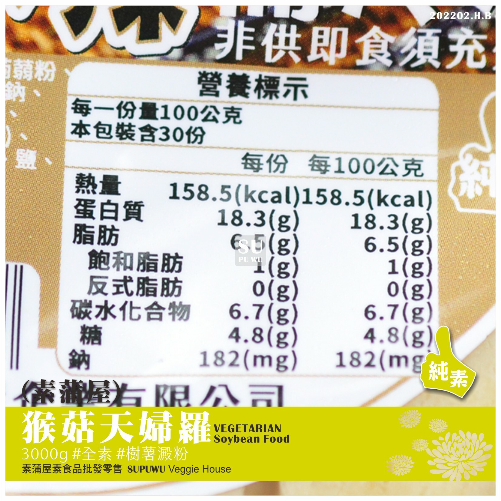 主要成分:樹薯澱粉、蒟蒻粉、猴頭菇