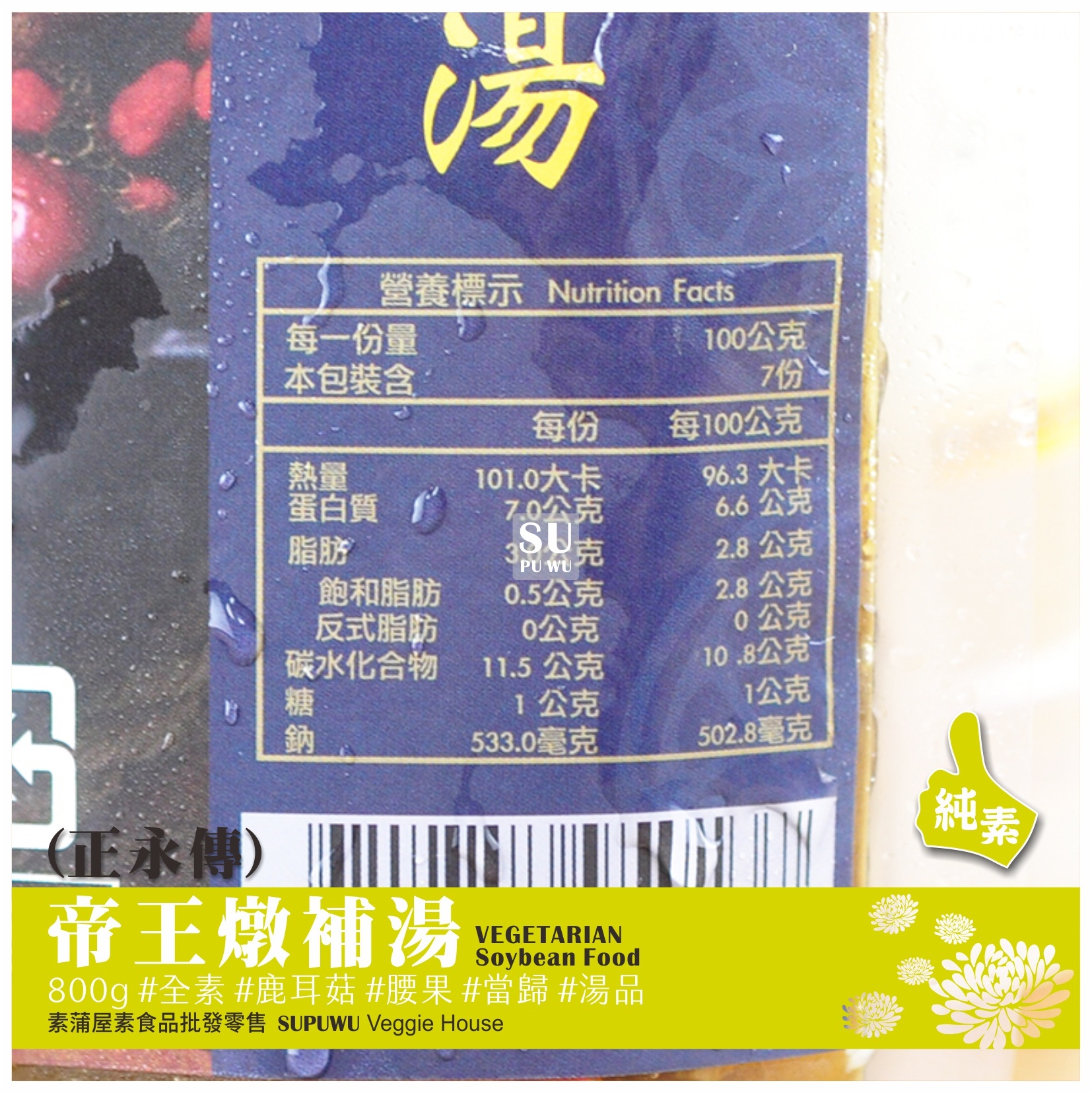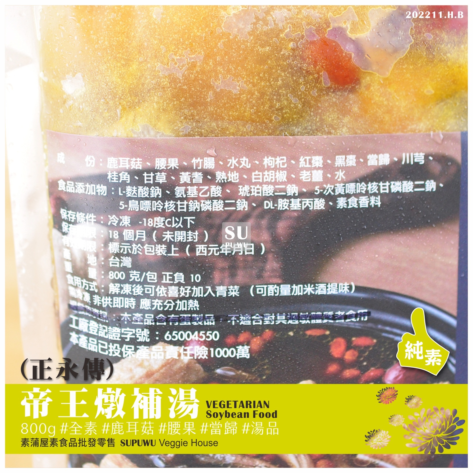 主要成分:鹿耳菇、腰果、竹腸、水丸、枸杞、紅棗、當歸