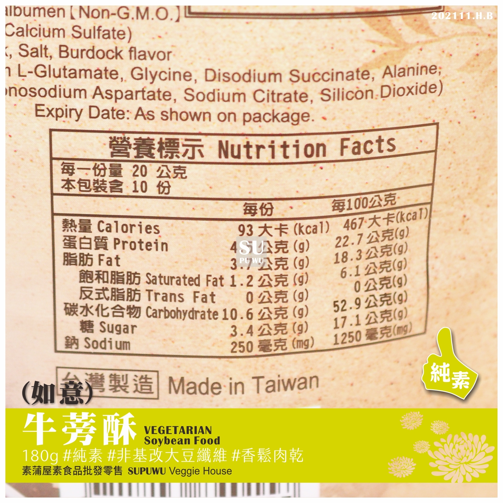 主要成分:非基因改造大豆纖維